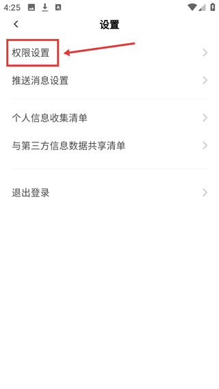 3、進入設置頁面后,在功能列表里找到【權限設置】選項并點擊,進入該功能的具體配置界面。