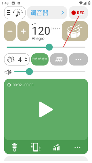 1、在app主界面,點擊右上角的【REC】按鈕,啟動錄制功能。