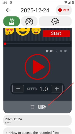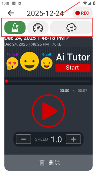 3、在錄制文件管理界面,可通過頂部功能欄支持切換節(jié)拍器、測速等工具。
