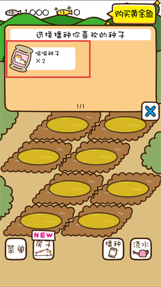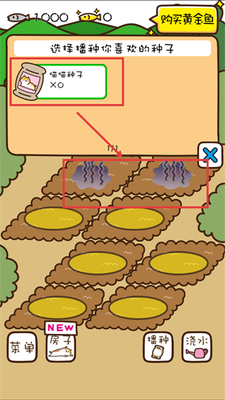 2、選擇【喵喵種子】,將其播種到土地上,每塊土地可播種一顆。