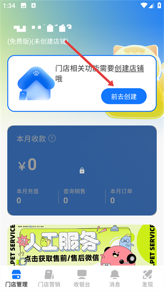 2、在門店管理界面中,點擊【前去創建】按鈕。