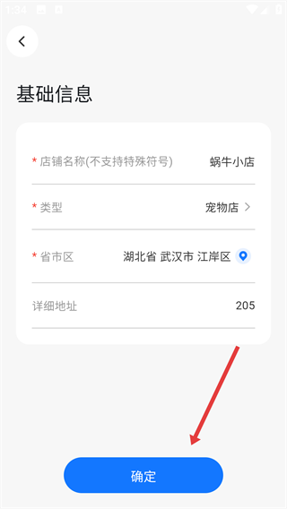 4、確認信息填寫完整后,點擊頁面底部的【確定】按鈕,完成店鋪的創建流程。