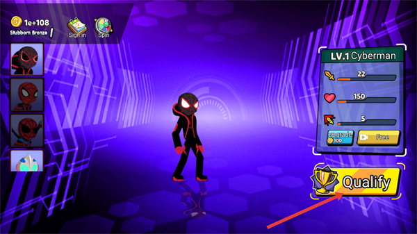 1、選擇【LV.1-Cyberman】角色,點擊【Qualify】按鈕,進入對戰關卡開啟戰斗。