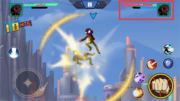 3、連續攻擊敵方角色,使其血量下降至【17/150】,累計達成【10-HITS】連擊提升傷害。