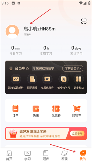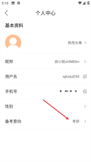 2、進入個人中心,找到“備考意向”選項并點擊。