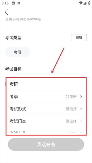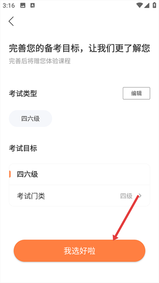 4、完成備考信息的選擇后,點擊“我選好啦”按鈕,保存備考意向。