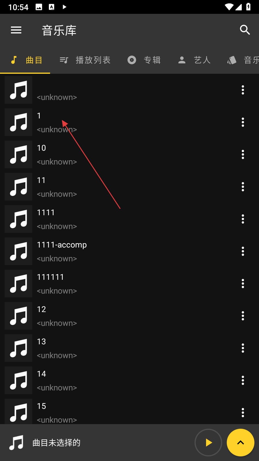 1、在音樂庫曲目列表,點擊【想要操作的音樂】,進入音樂播放及設置界面。