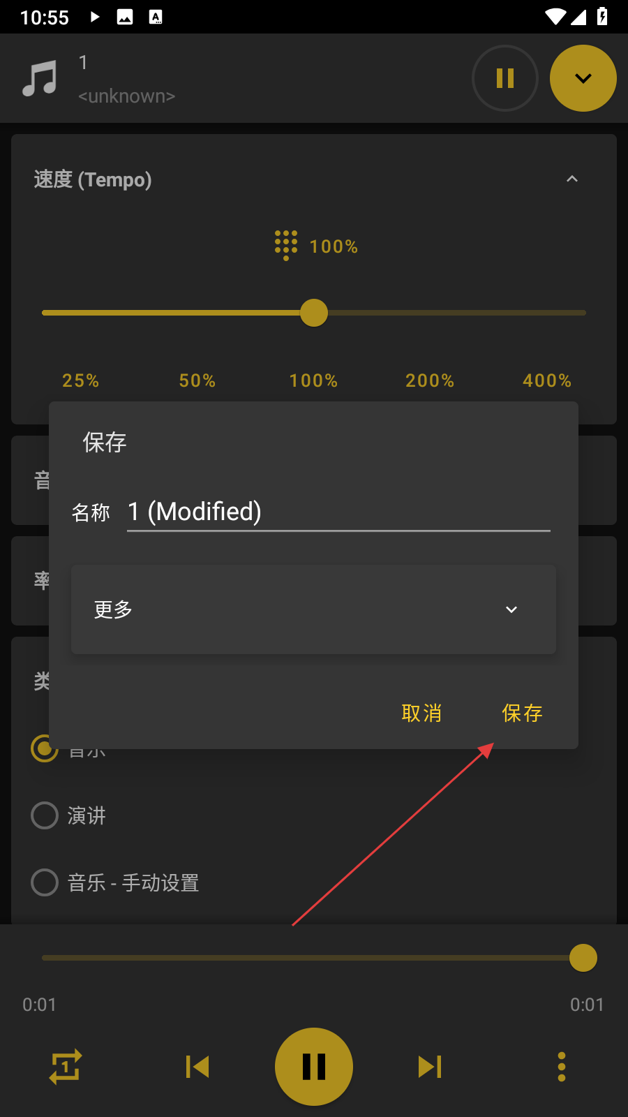 4、在保存設置窗口,確認保存名稱等信息后,點擊【保存】,即可完成音樂保存。
