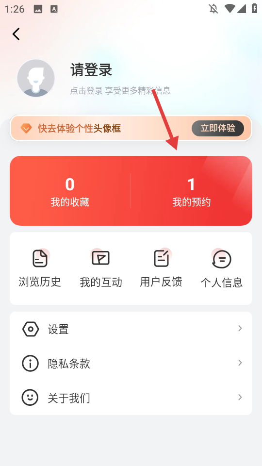 4、在個(gè)人中心頁面,點(diǎn)擊【我的預(yù)約】,即可查看已預(yù)約的賽事。