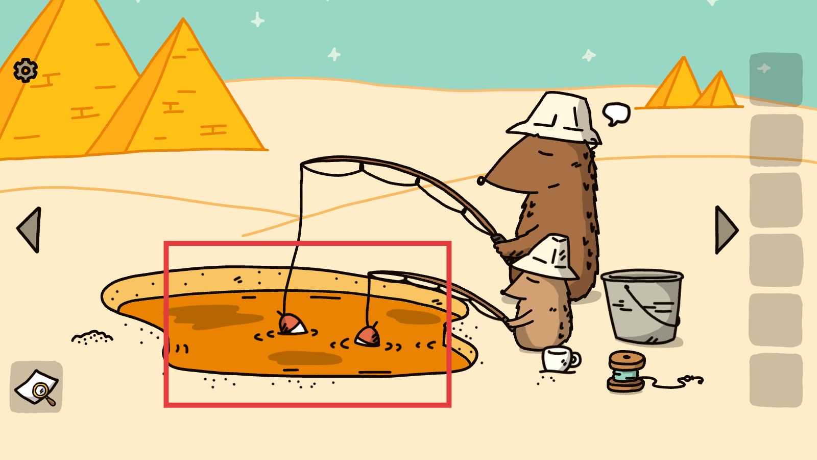 2、觀察釣魚場景,點擊水池,進行釣魚操作。
