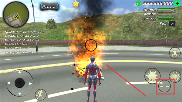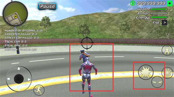 1、操控【蜘蛛人】角色靠近【警察】,點(diǎn)擊右側(cè)區(qū)域技能,快速完成擊殺目標(biāo)推進(jìn)任務(wù)。
