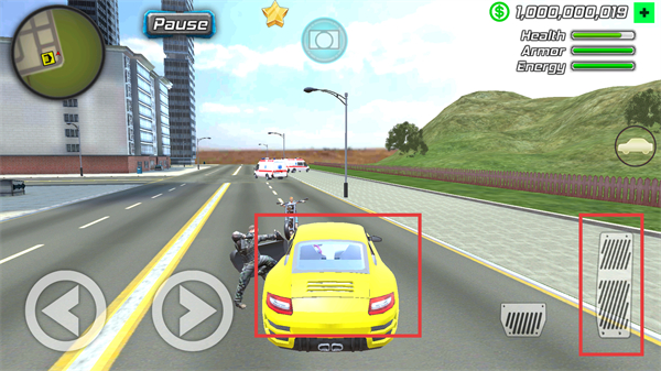 3、靠近黃色跑車(chē)后,點(diǎn)擊右側(cè)【加速板】圖標(biāo),駕駛車(chē)輛擺脫敵人并完成【偷車(chē)】任務(wù)要求。