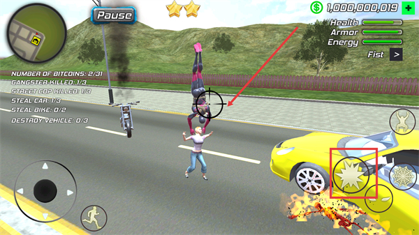 4、角色倒掛時(shí)使用【爆炸】技能,攻擊敵人的同時(shí)推進(jìn)【黑幫擊殺】任務(wù),注意能量值消耗情況。