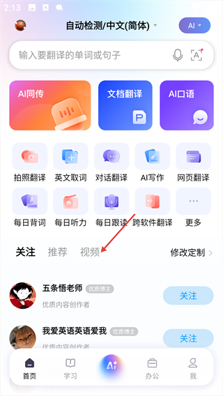 1、在軟件的首頁中點(diǎn)擊頂部的自動(dòng)檢測(cè)/英語。