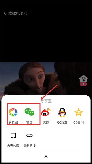 4、選擇對(duì)應(yīng)的微信平臺(tái),完成該視頻內(nèi)容的分享操作。