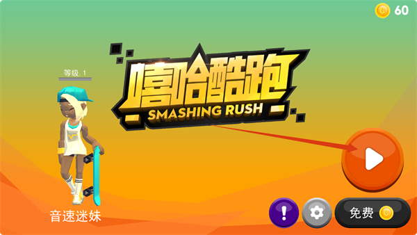 1、在游戲主界面,點擊橙色播放按鈕,進入【嘻哈酷跑-SMASHING-RUSH】開始跑酷挑戰。