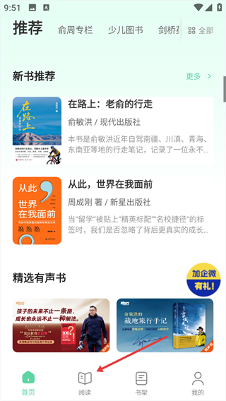 1、點擊底部【閱讀】選項,切換至閱讀頁面。