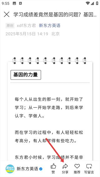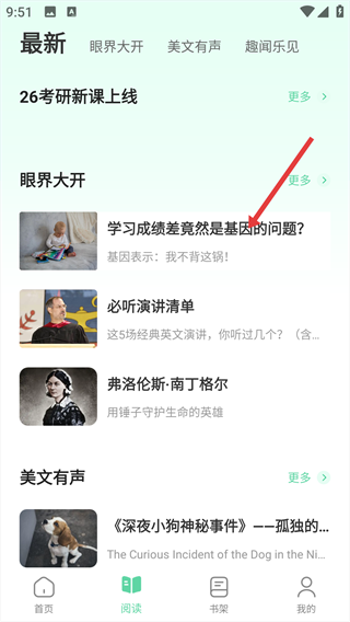 2、在閱讀頁面,選擇目標文章,進入該文章詳情頁。