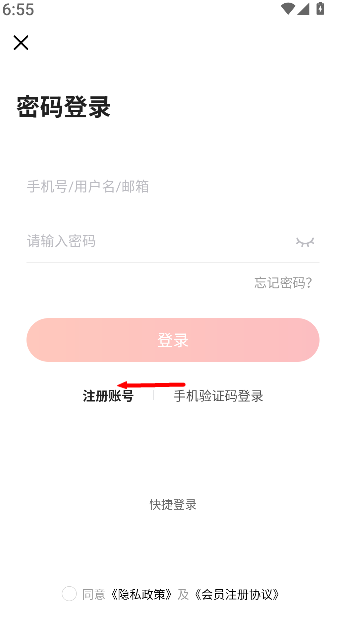 3、點擊“注冊賬號”,按照提示完成信息填寫即可登錄。
