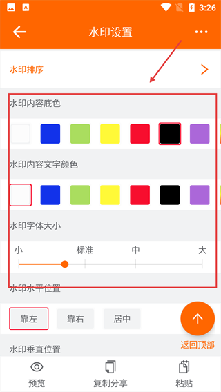 4、還可以調(diào)整水印的【底色】【文字顏色】【字體大小】等樣式,自定義水印的顯示效果。
