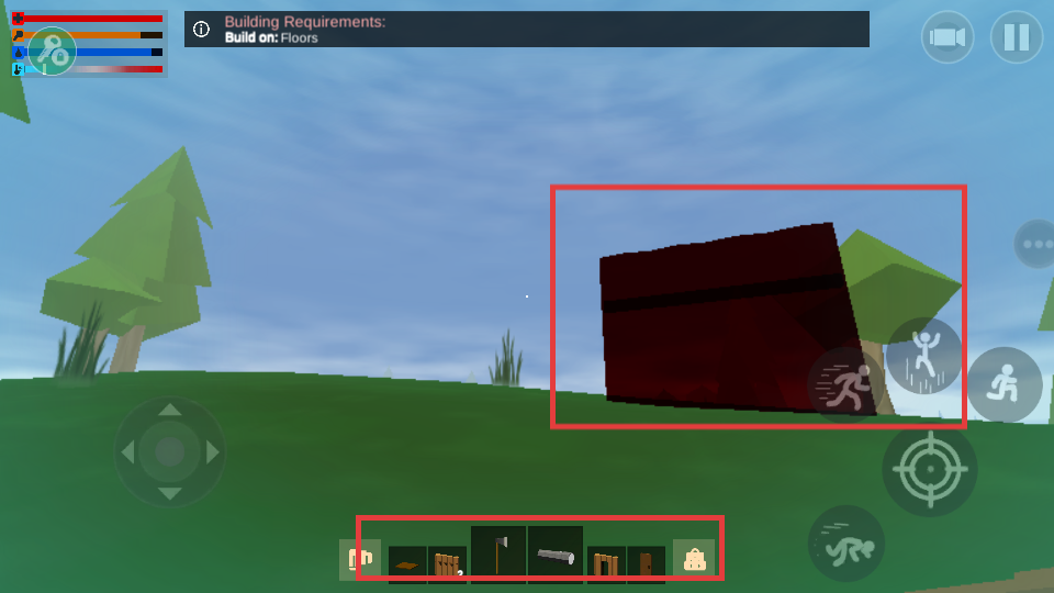 3、利用下方道具欄物品,在場景中建造地板,推進建筑進程。
