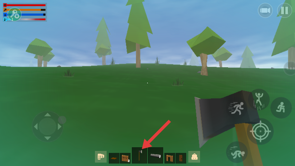 2、使用斧頭,收集資源,為建造房屋等操作做準備。