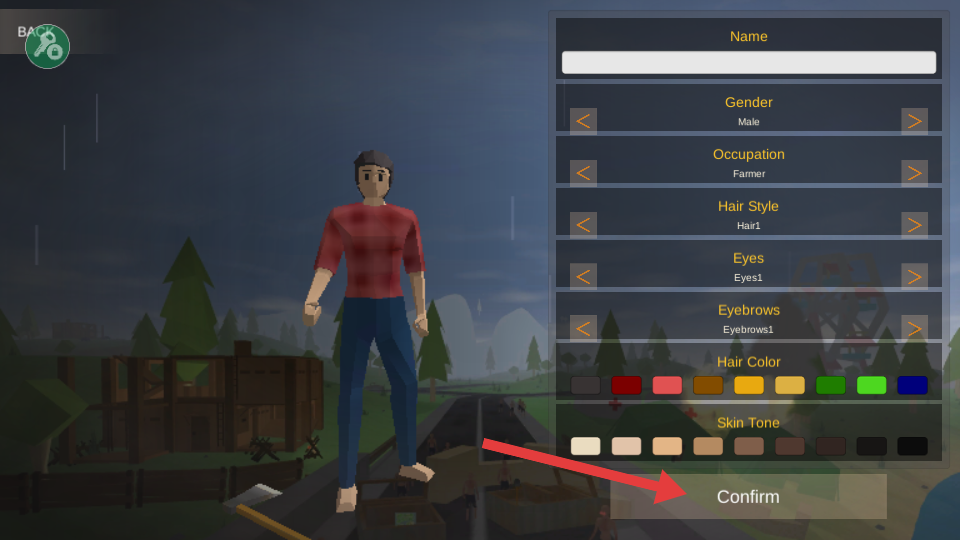 1、點擊【Confirm】,確認角色創建,進入游戲,開啟生存建造冒險。