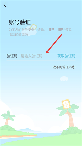 3、在賬號驗證頁面,輸入收到的驗證碼。