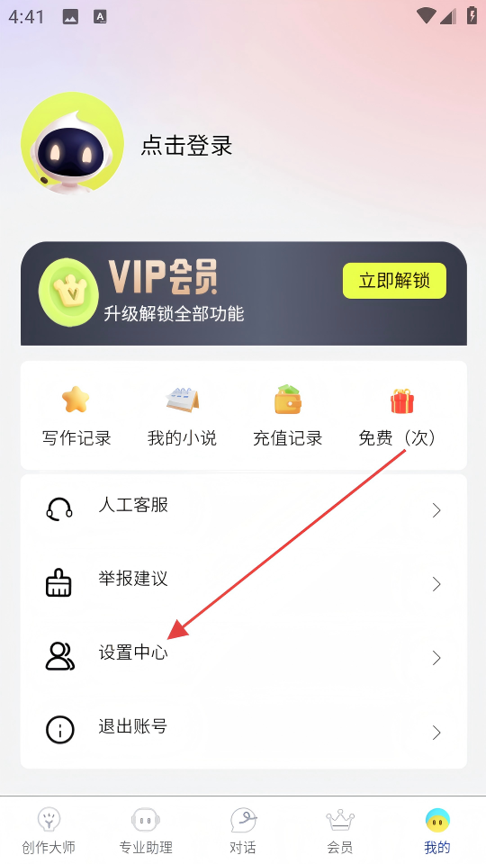 2、在個人頁面,點擊【設置中心】,進入設置頁面。