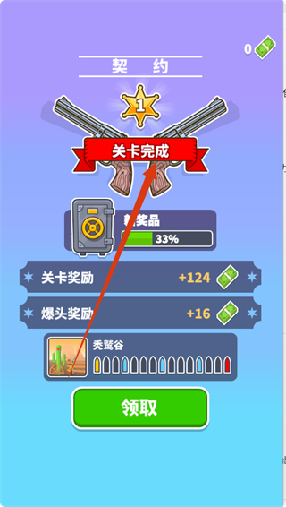 4、關(guān)卡完成后,點(diǎn)擊【領(lǐng)取】按鈕,獲取關(guān)卡獎(jiǎng)勵(lì)和爆頭獎(jiǎng)勵(lì),積累資源以提升戰(zhàn)力。