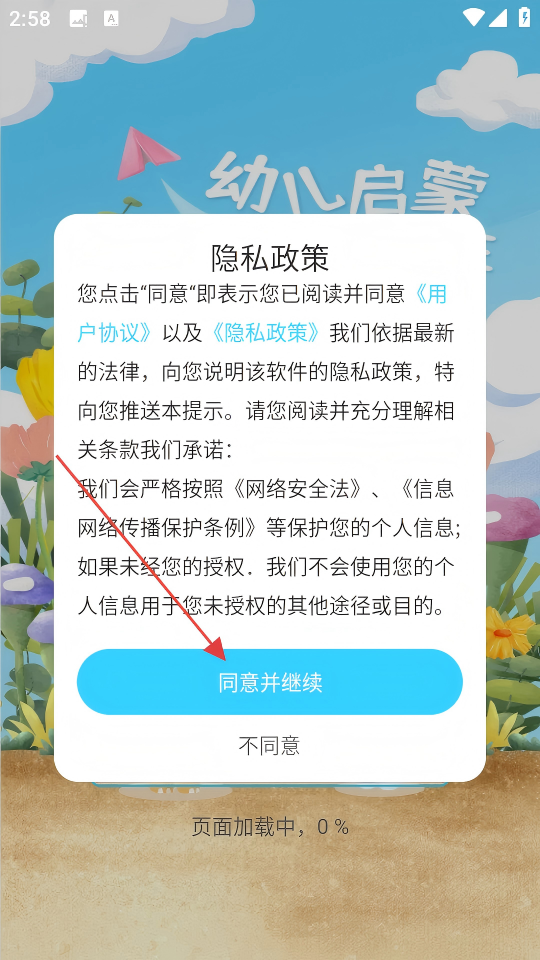 1、點擊【同意并繼續】,進入“幼兒睡前故事”首頁。
