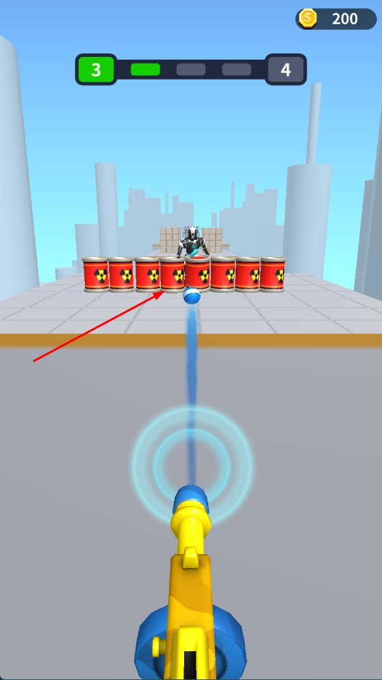 4、繼續后續關卡,瞄準油桶使敵人爆炸,重復射擊操作。