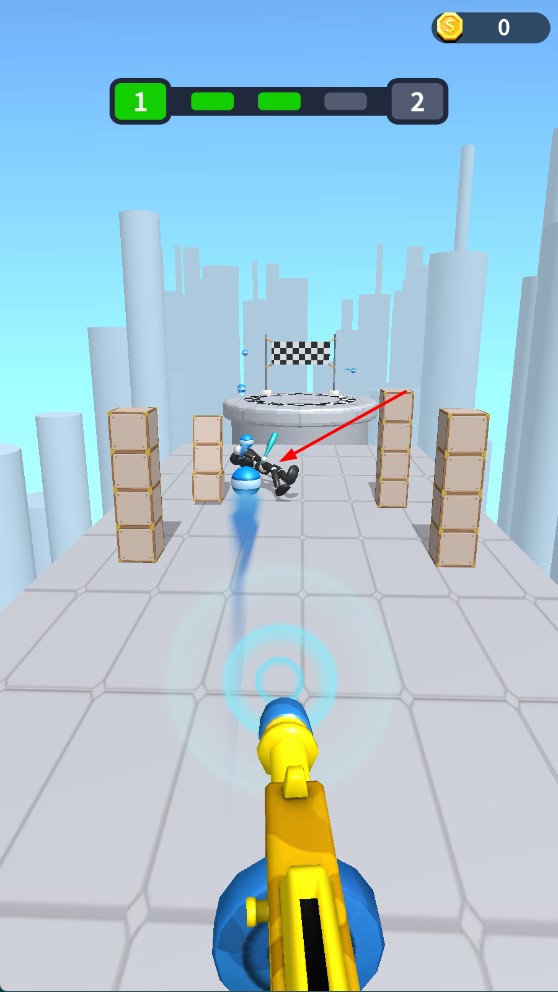 1、趣味射擊玩法:創新的平臺跳躍射擊機制,空中完成漂亮的移動射擊會獲得額外分數加成,考驗玩家的時機把握能力。