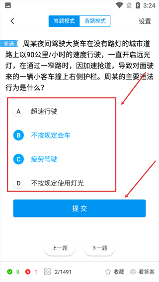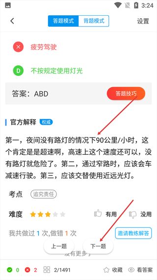 4、提交后將展示題目答案、官方解釋等內(nèi)容,點(diǎn)擊“下一題”按鈕,繼續(xù)進(jìn)行后續(xù)題目的練習(xí)。