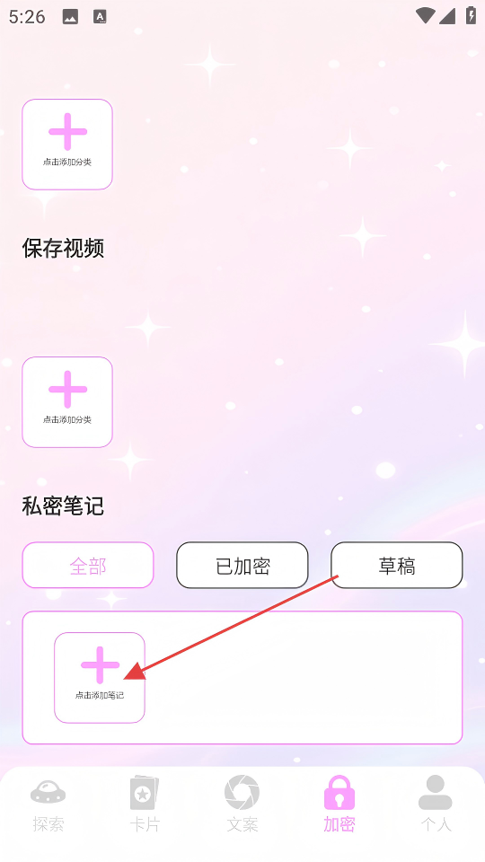 2、在加密頁面點擊私密筆記的【點擊添加筆記】,進入筆記編輯頁面。