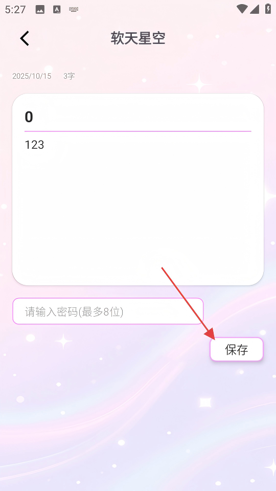 3、在筆記編輯頁面輸入筆記內容及密碼后,點擊【保存】。