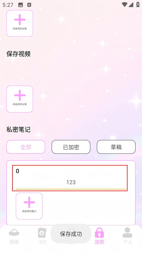 4、保存后回到加密頁面,可看到新增的私密筆記,完成私密筆記的添加操作。