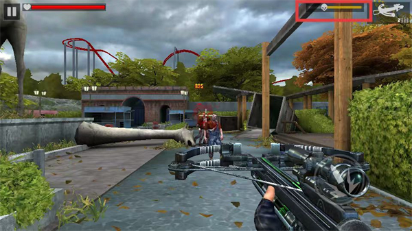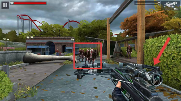 2、瞄準成群的喪尸,使用弩箭武器的瞄準鏡功能,精準射擊,優先消滅靠近的喪尸群體。