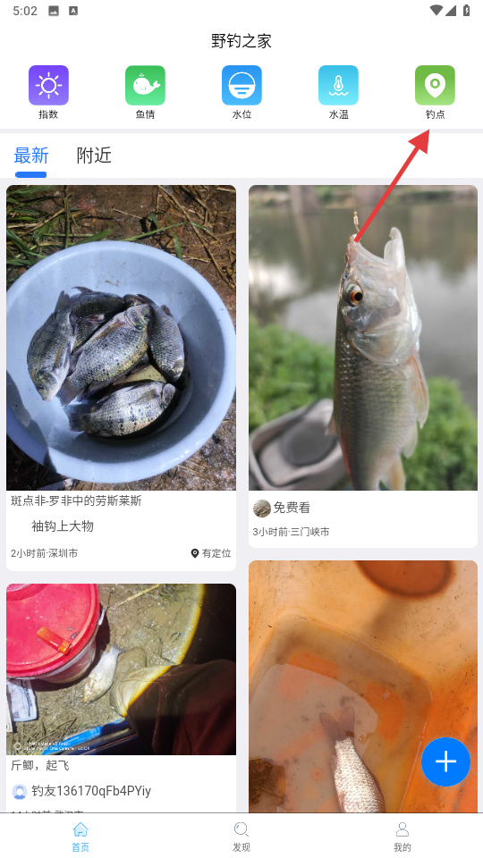 1、點擊右上角【釣點】,進入釣點地圖界面。