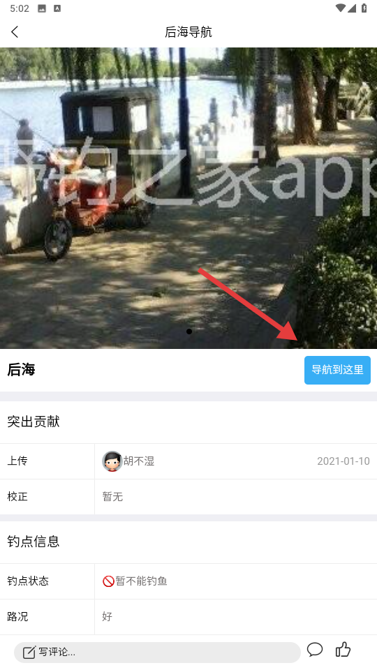 3、進入釣點詳情頁后,點擊【導航到這里】。