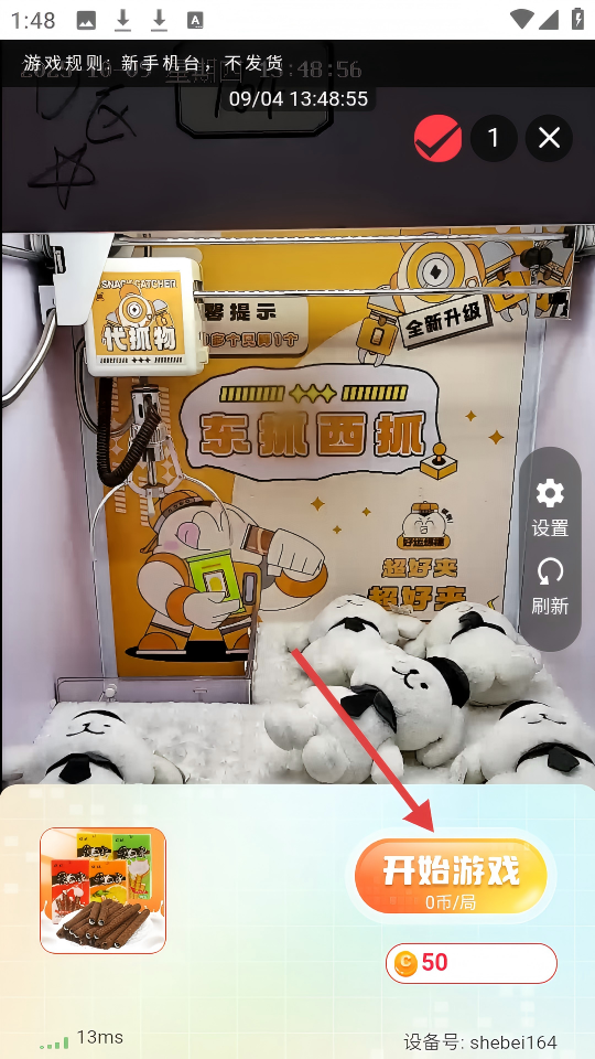 2、在抓娃娃游戲界面,點(diǎn)擊【開(kāi)始游戲】按鈕,進(jìn)入游戲。