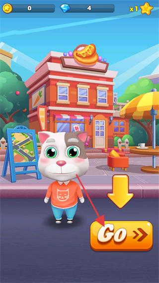 1、點擊界面中的【Go】按鈕,進入酷跑關卡,操控寵物角色開始在城市道路中奔跑。