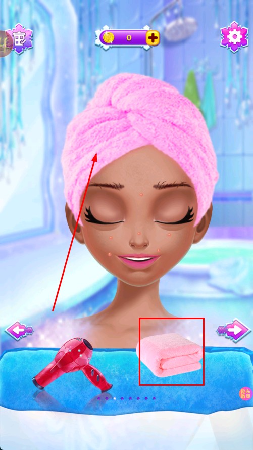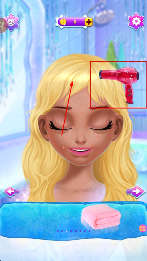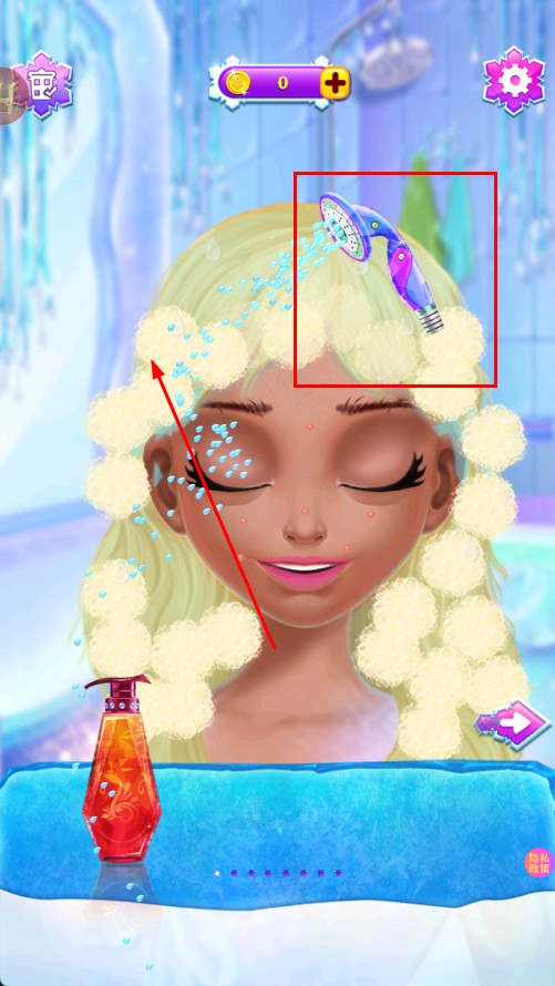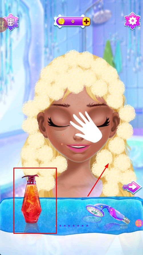 1、點擊紅色瓶狀物品,將其涂抹到頭發上,進行護理。