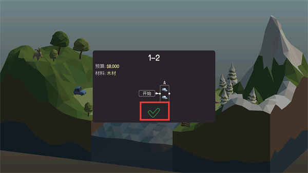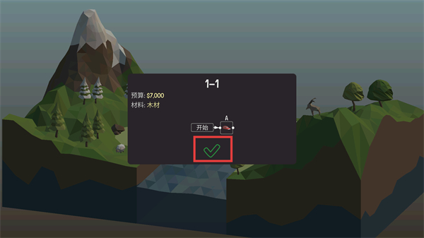 1、進入【1-1】關卡,確認預算【7000】與材料【木材】,點擊開始按鈕即可啟動車輛通行測試。