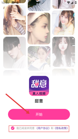1、在APP啟動頁,勾選同意協議后點擊【開始】。