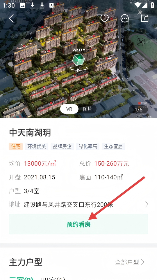 3、在【中天南湖玥】樓盤詳情頁,點擊【預約看房】,進入預約看房頁面。