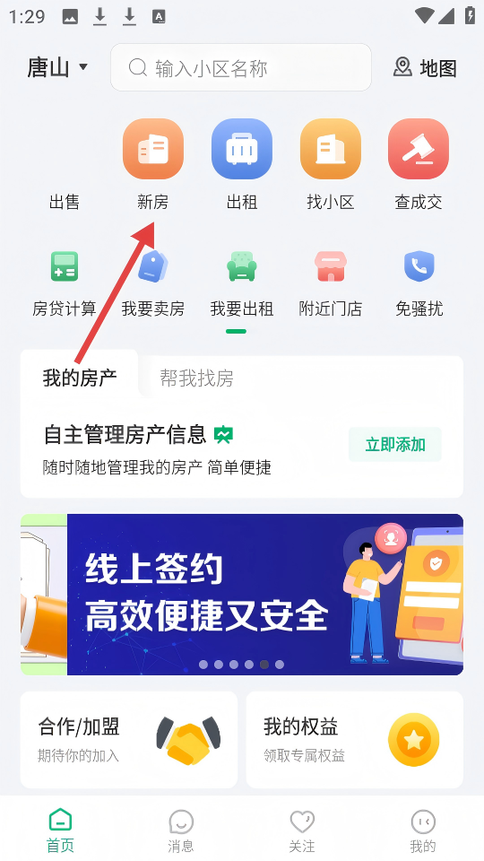1、在首頁,點擊【新房】,進入新房樓盤列表頁。