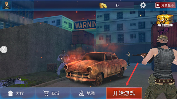 1、在初始界面點擊【開始游戲】按鈕,進入戰斗關卡,開啟射擊對戰挑戰。