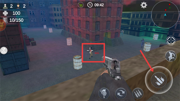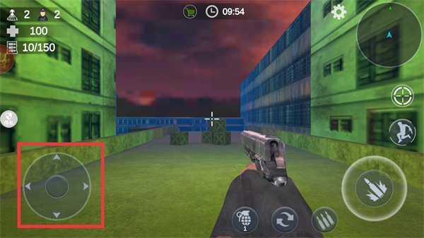 2、通過紅框內的方向鍵控制角色移動,利用槍械瞄準目標,推進戰斗進程。