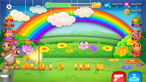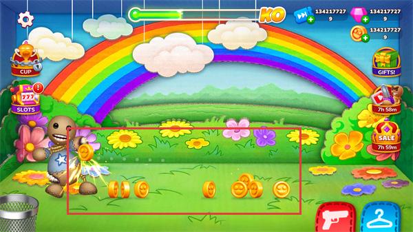 2、持續使用槍械道具攻擊木偶人,觸發射擊特效的同時,讓更多金幣道具掉落以便收集。